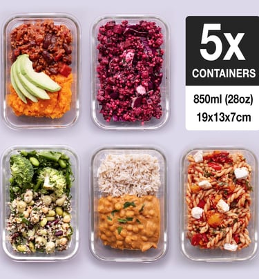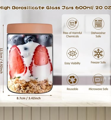 Versatile glass jars with airtight lids, perfect for preparing salads, overnight oats, or layered meals. These containers keep ingredients fresh and separated until it's time to eat — ideal for hectic meal-prepping schedules.