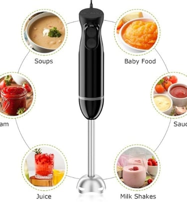 This powerful handheld blender offers various speed options and comes with interchangeable blades/attachments for blending, whisking, chopping, and mixing. Ideal for preparing soups, smoothies, sauces, and for quick meal prep without the hassle of multiple pots.